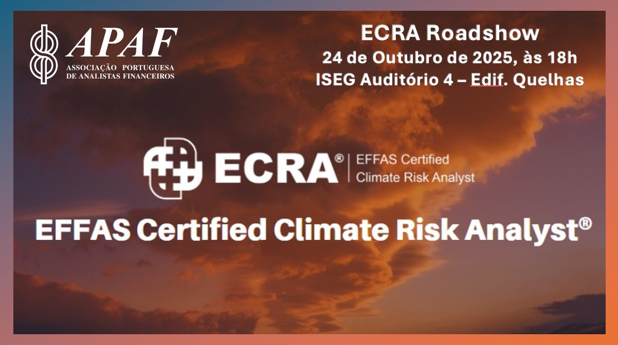O lançamento do programa ECRA - EFFAS Certified Climate Risk Analyst terá lugar no dia 24 de Outubro de 2025 às18h, no ISEG Auditório 4 - Edif Quelhas, seguido de um cocktail. Contamos com a sua presença!